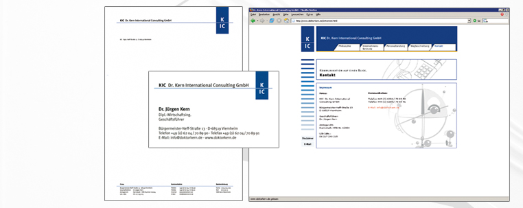 Dr. Kern International Consulting Klare reduzierte Gestaltung und ein satter Blauton vermitteln analytische Fähigkeiten sowie Sachkompetenz. |