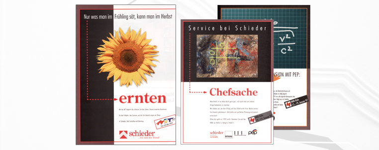 Schieder Gruppe Gesamtkonzeption einer Anzeigenkampagne mit hohem Remind-Effekt durch unverwechselbare Bild- und Textsprache. |